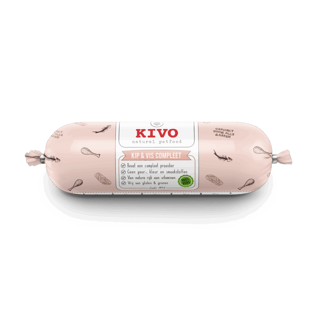 Deze maaltijd bestaat voor 65% uit vers kippenvlees, 20% verse paling en voor 15% uit verse zalm. Dit wordt samengesteld uit: - 65% spiervlees - 20% orgaanvlees - 15% bot