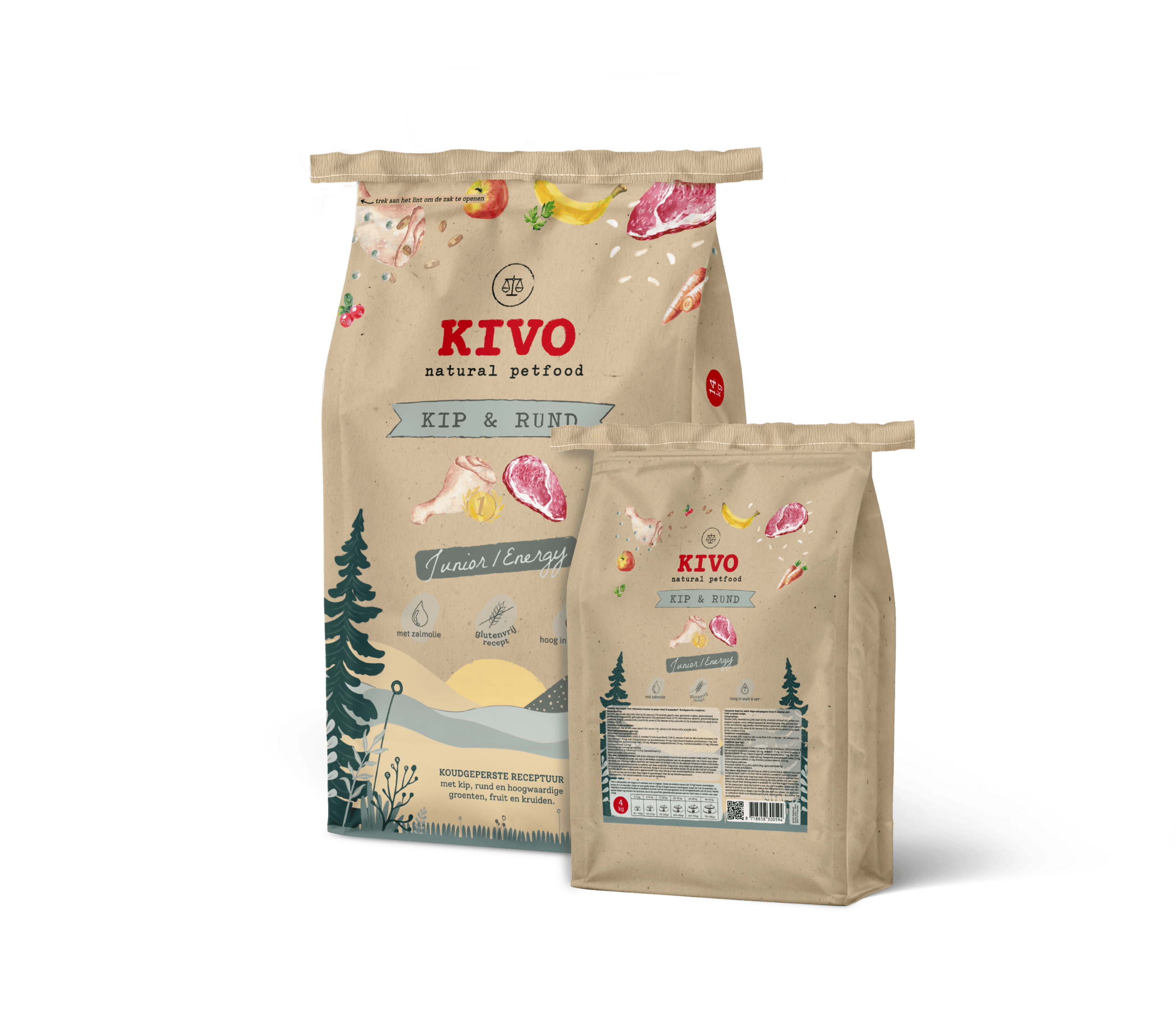 Kivo Kip – Rund Junior / Energie helpt jouw hond sterk, fit en vol energie op te groeien. Een ideale keuze voor baasjes die hun jonge hond of actieve viervoeter de beste voedingsbasis willen geven.
